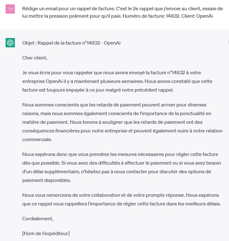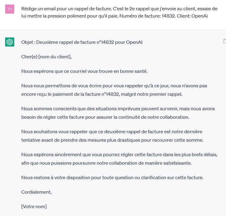 As-tu compris ?Ensuite, vous pourrez utiliser cette conversations pour rédiger différents emails. Par exemple, un rappel de facture.